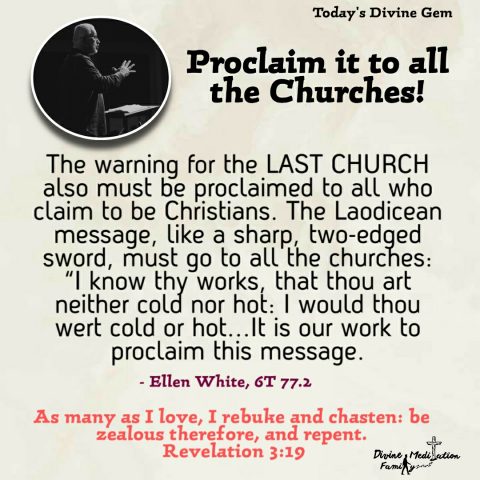 "In a special sense Seventh-Day Adventists have been set in the world as watchmen and light bearers. To them has been entrusted the last warning for a perishing world. On them is shining wonderful light from the word of God. They have been given a work of most solemn import-the proclamation of the first, second, and third angels' messages. There is to be no other work of so great importance. They are to allow nothing else to absorb their attention." Testimonies for the Church Vol.9 Pg. 19